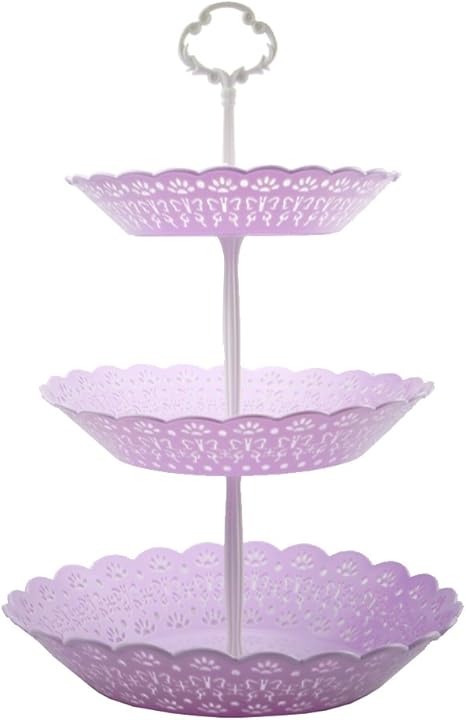 3 Tier Cake Stand And Fruit Plate Cupcake Plastic Stand Purple For
