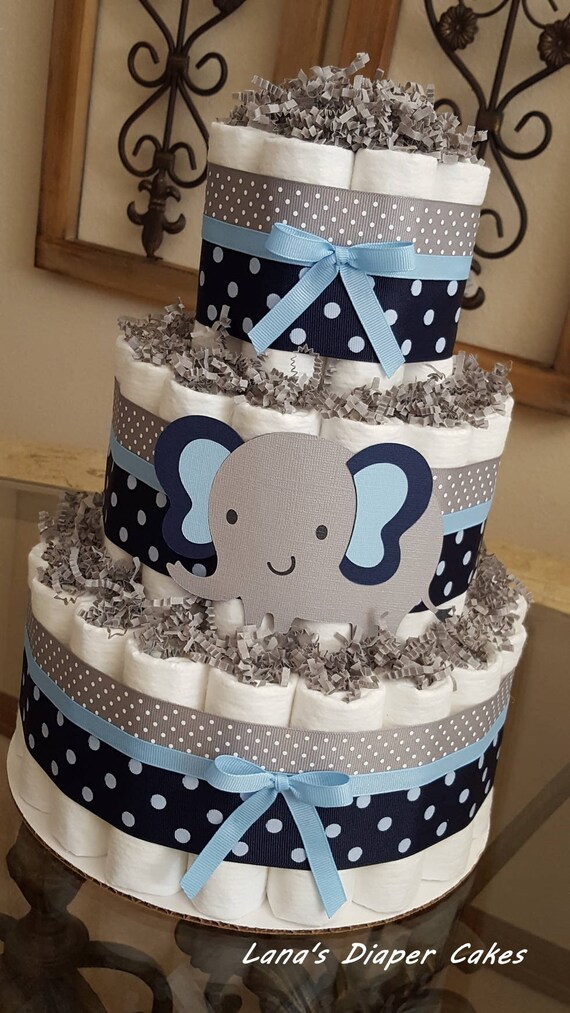 3 Tier Navy Blue And Gray Elephant Diaper Cake Baby Shower Etsy