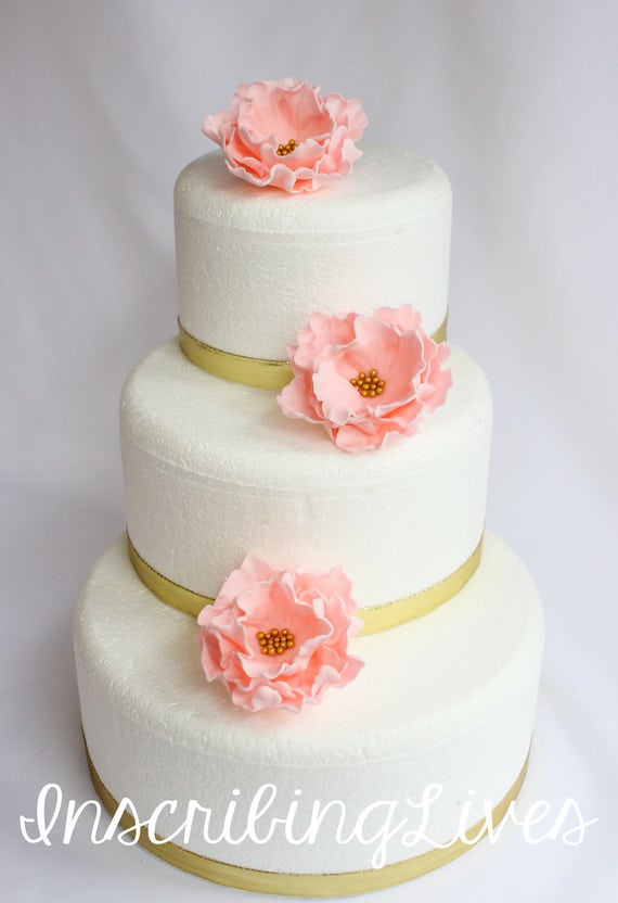 Blush Pink Peony Fondant Flowers 3pcs Large Blush Pink Gold Etsy