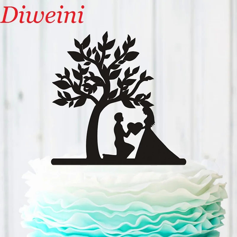 Rustic Wedding Cake Topper Personalized Silhouette Proposal Cake