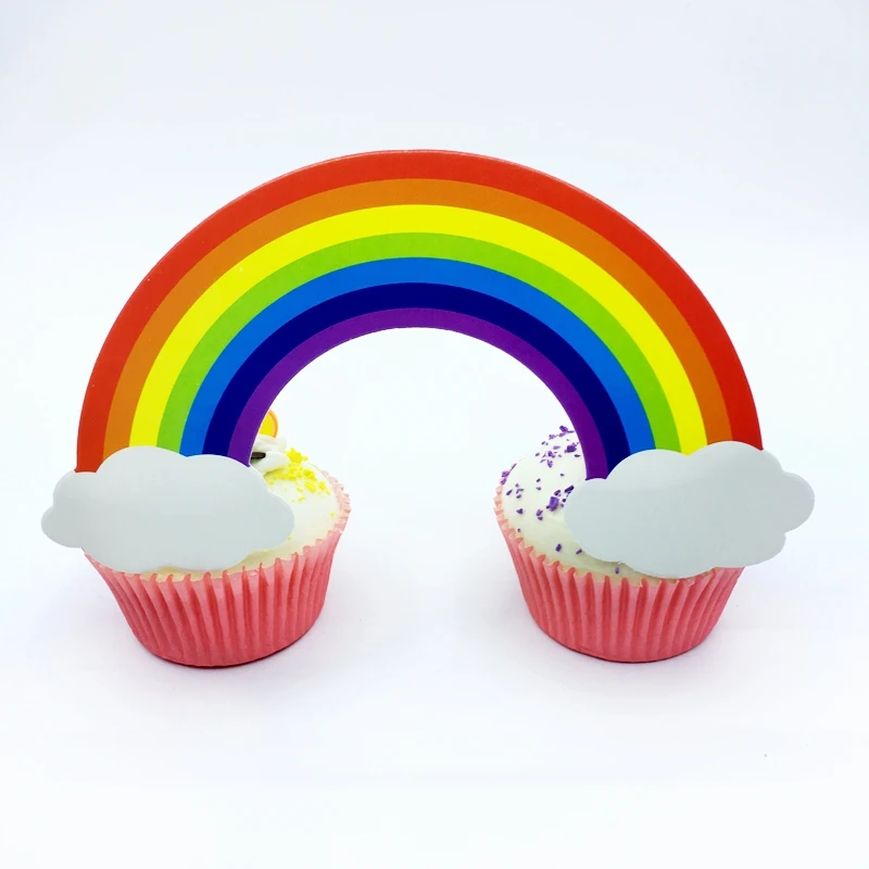 Big Colorful Rainbow Multicolor Bridge Clouds Cupcake Topper Pick