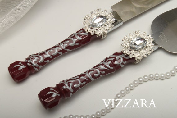 Sake Servers Burgundy Wedding Cake Knife And Server Burgundy Etsy