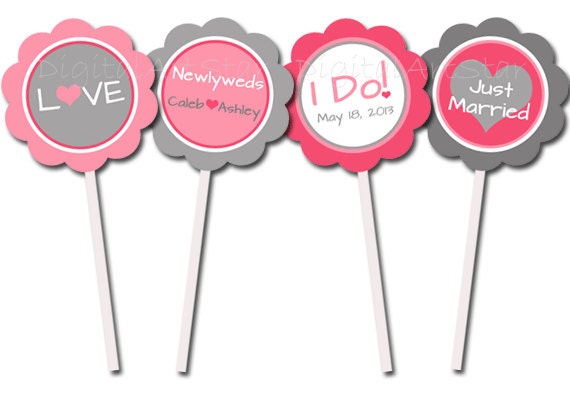 Personalized Wedding Cupcake Toppers Pink And Gray Wedding Etsy