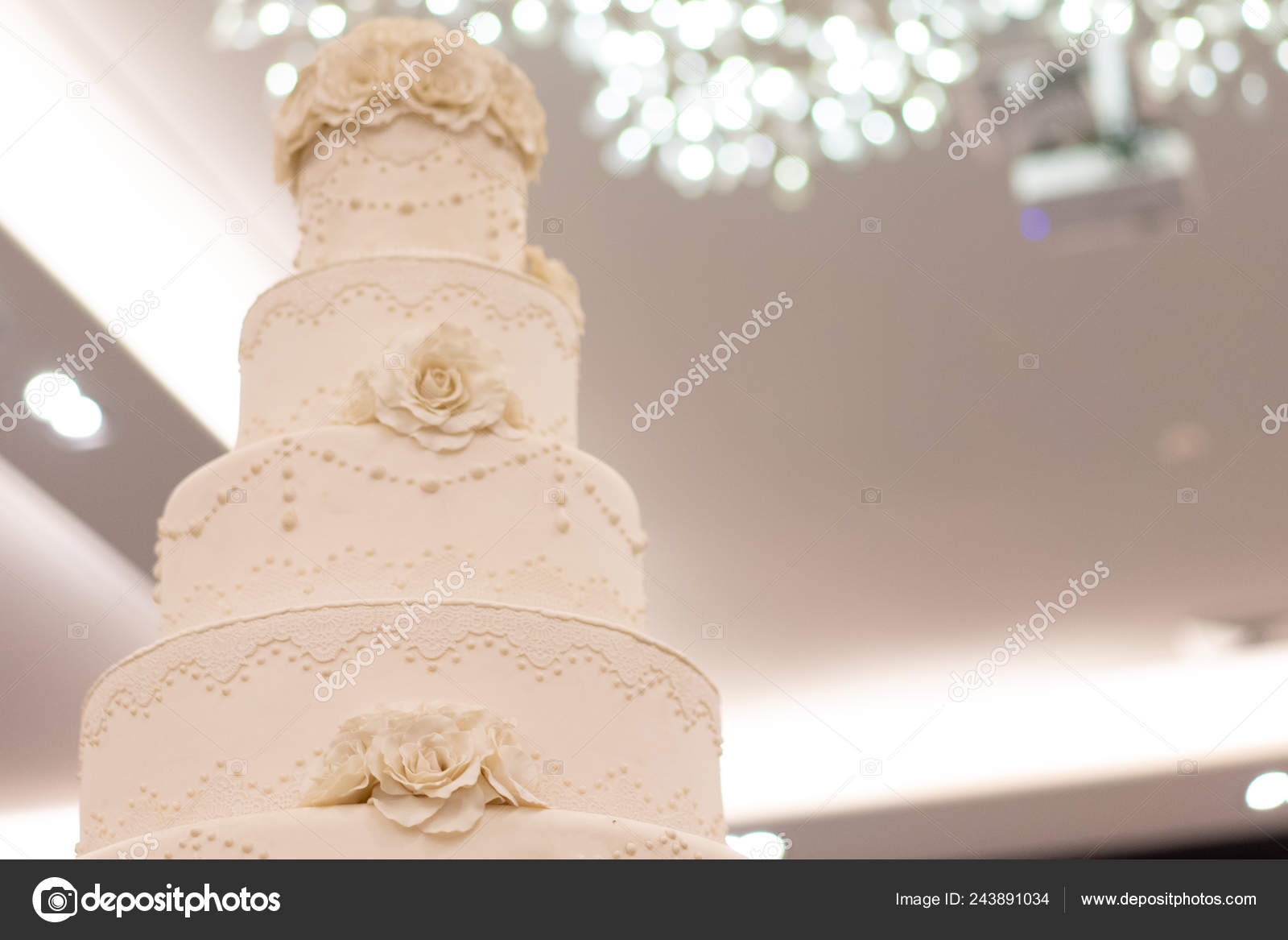 Elegant Wedding Cake Closed Blur Background Stock Photo C Anon