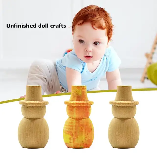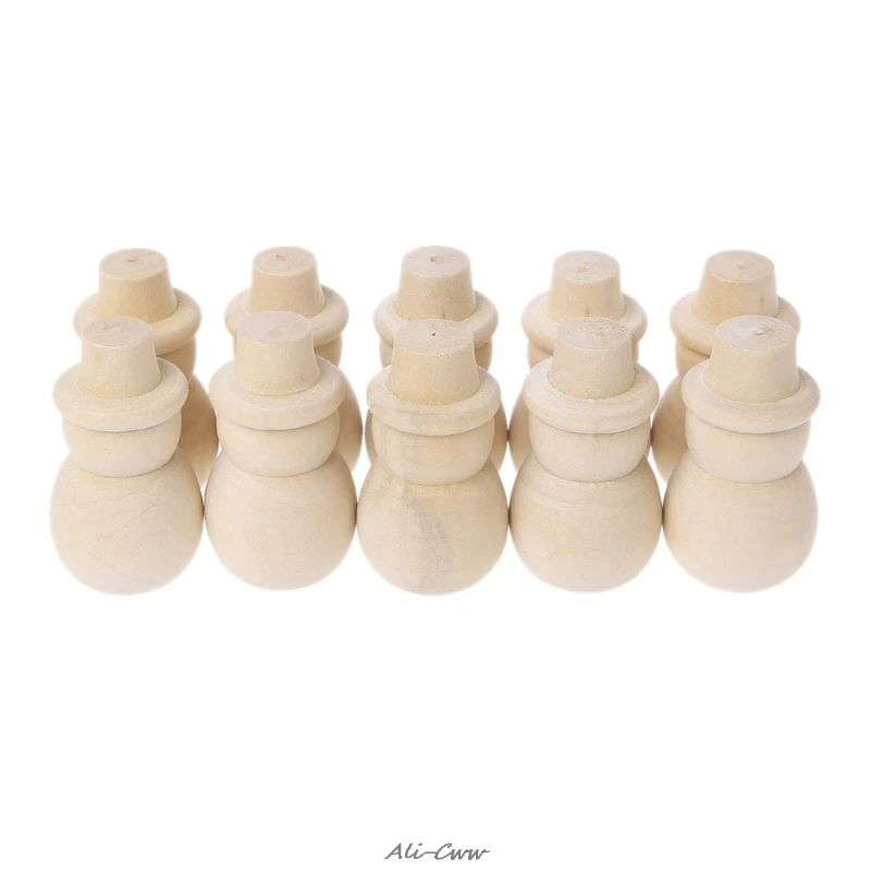 10pcs Set Unfinished Diy Wood Peg Doll Christmas Snowman Cake