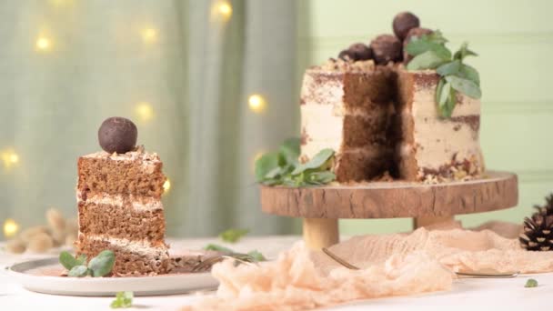 Slice Plate Delicious Naked Coffee Hazelnuts Cake Table Rustic