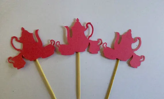 Teapot Alice In Wonderland Cupcake Toppers Wedding Pets Birthdays