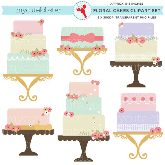 Floral Cakes Clipart Set Clip Art Set Of Cakes Vintage Etsy