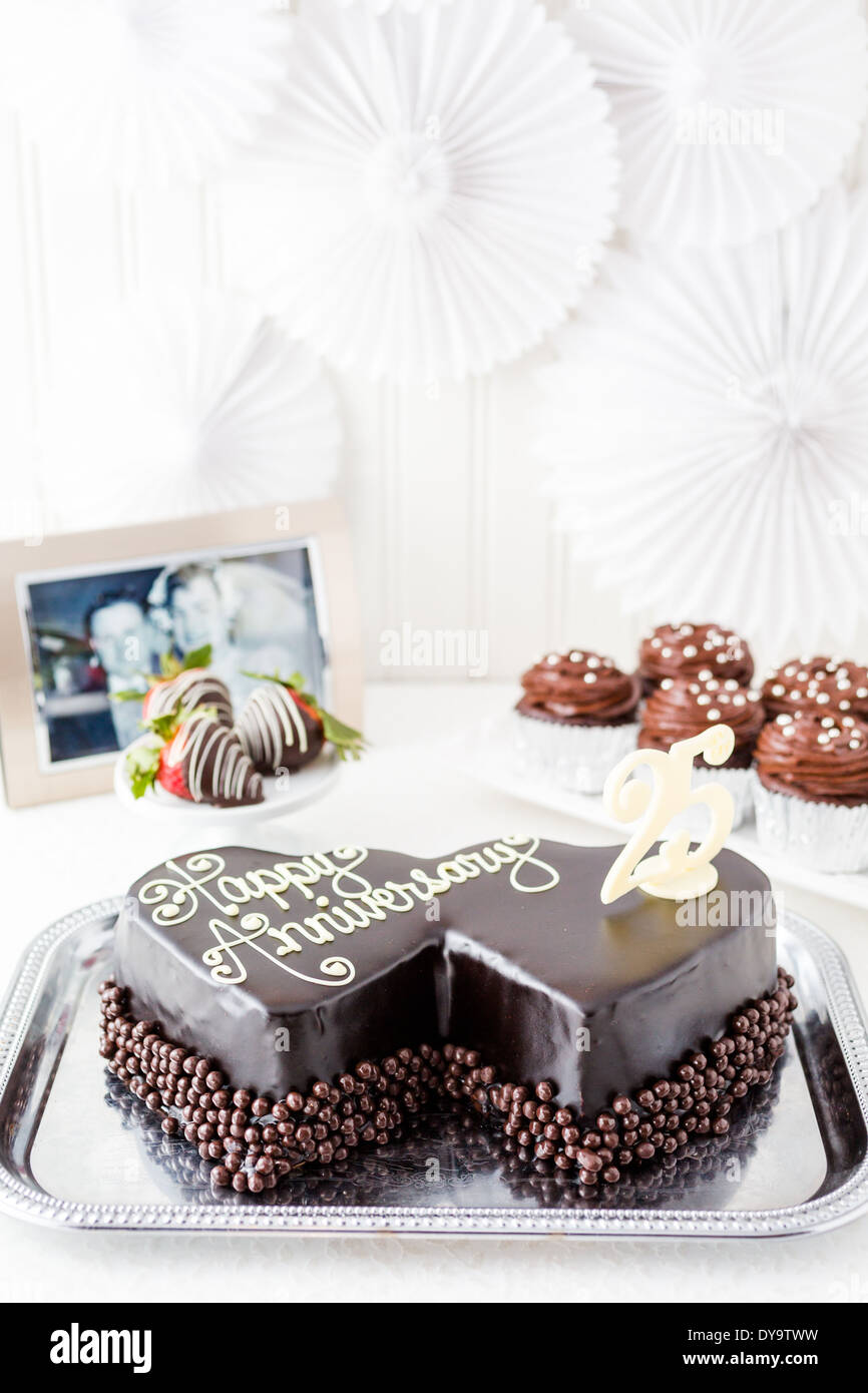 Celebrating Wedding Anniversary With Heart Shape Chocolate Cake