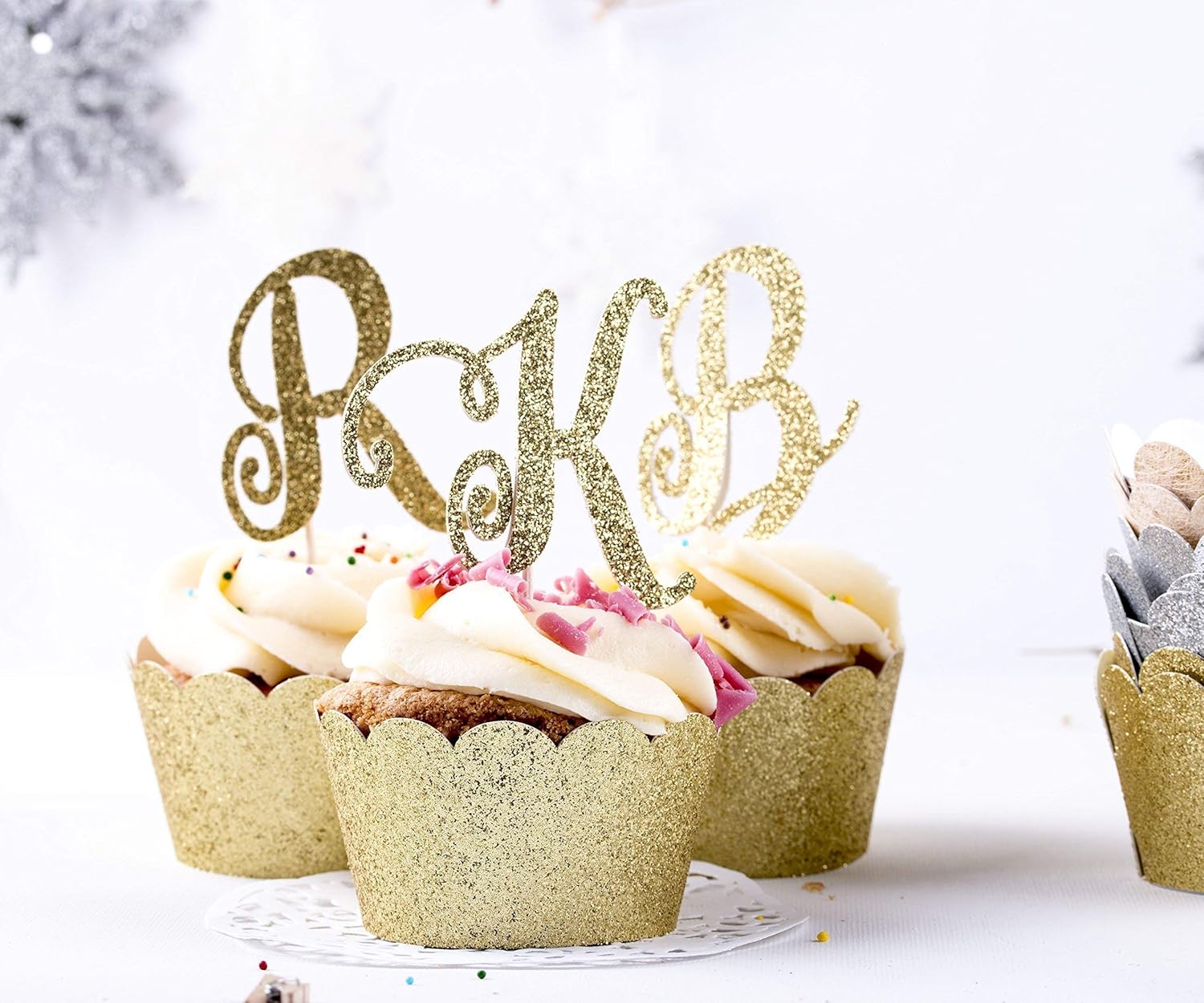 Amazon Com Gold Initial Cupcake Toppers Custom Wedding Cake