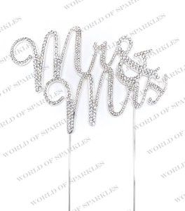 Fancy Mr Mrs Wedding Diamante Rhinestone Gem Cake Topper Silver