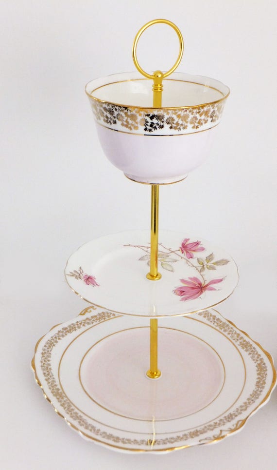 Tiered Cake Stand Pastel Pink Vintage China 3 Tier Cake Etsy