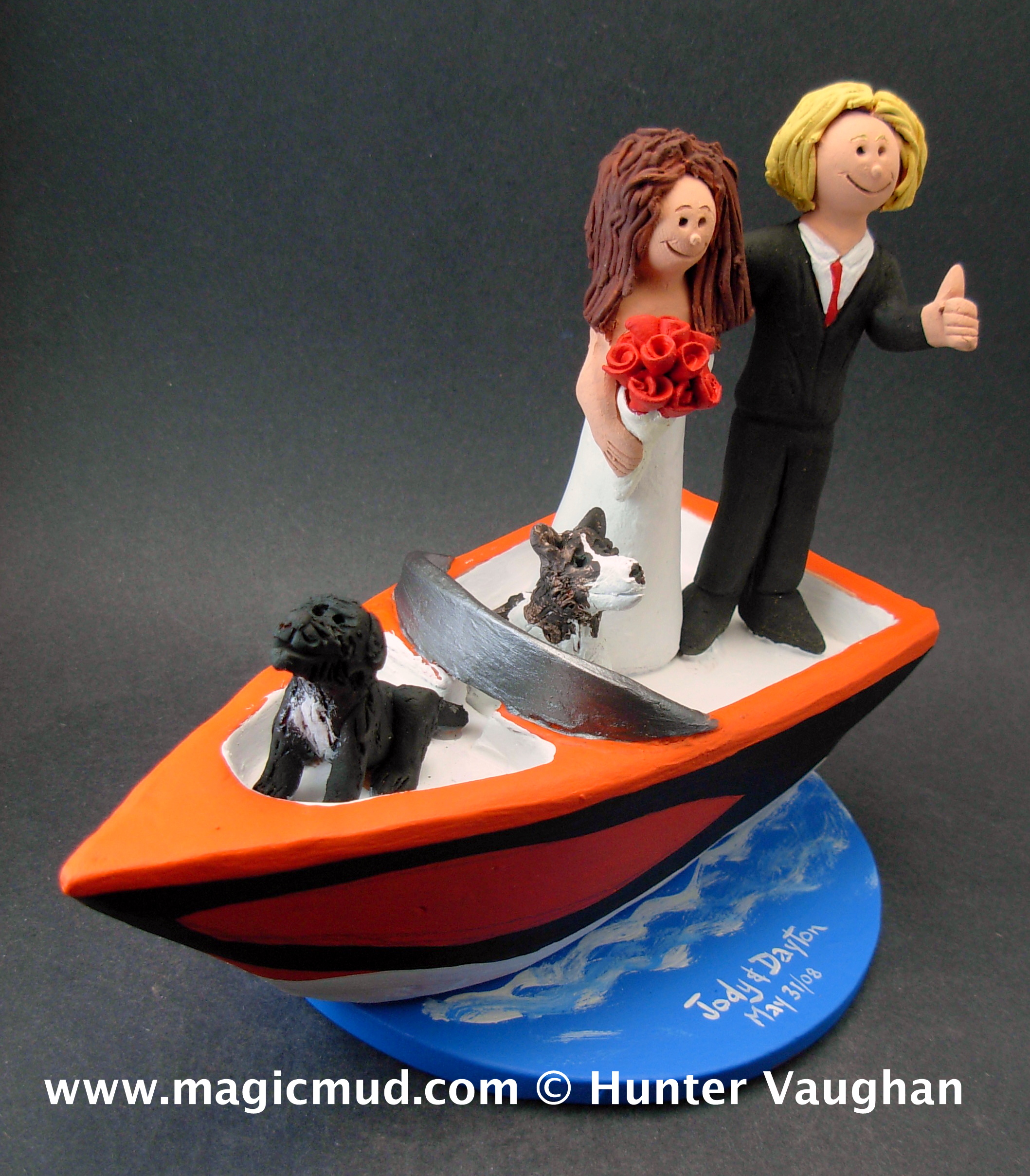 Wedding Cake Topper Dog Driving Boat With Bride And Groom