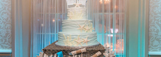 A delicious cake is the sweetest ending to a perfect wedding celebration. Dessert designs concocted a cake with height for this. This wavy ruffled pattern is a fun choice for a beach wedding.