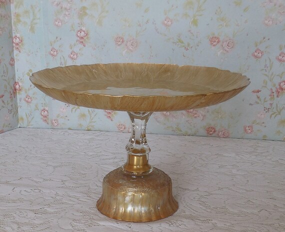 10 Champagne Gold Glass Cake Stand Glass Wedding Cake Etsy