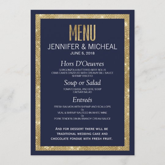 Elegant Modern Navy Blue Gold Sequin Wedding Menu Zazzle Co Uk