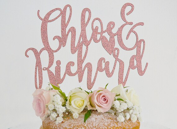 Rose Gold Wedding Cake Topper Customised Glitter Wedding Etsy