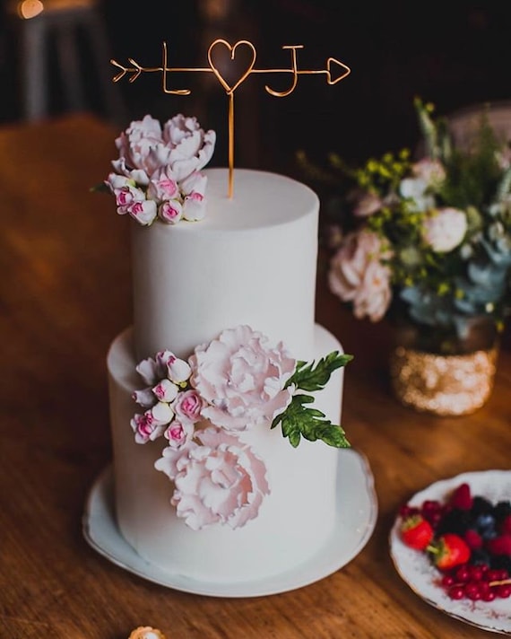 Monogram Initials Arrow Heart Wire Rustic Chic Wedding Cake Etsy