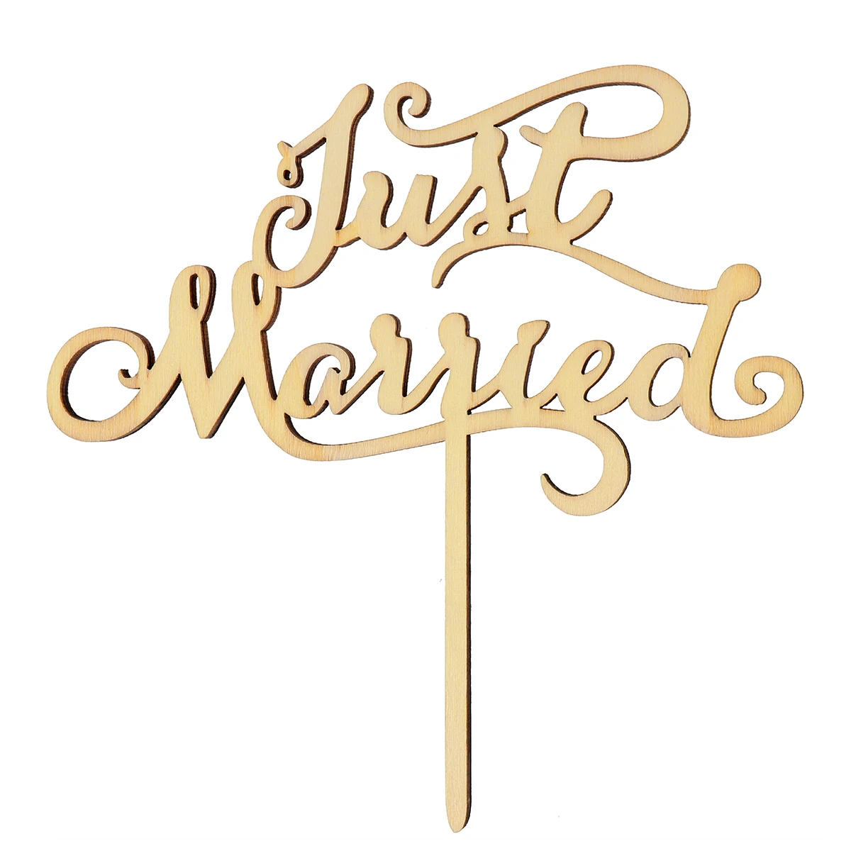 Just Married Wooden Wedding Cake Toppers Flags Cake Picks Cupcake