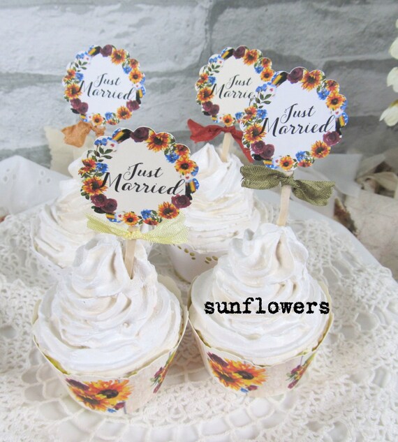 Just Married Floral Succulent Or Tropical Cupcake Toppers Etsy