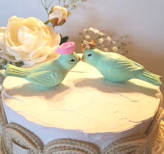 Mint Love Birds Wedding Cake Topper Mint Birds With Crown And Etsy