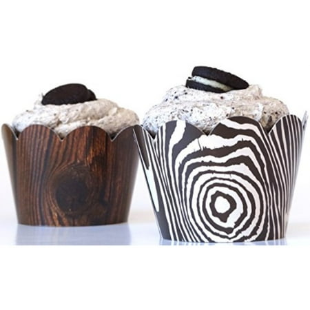 Wood Grain Cupcake Wrappers Kids Party Cake Decorations Lumberjack