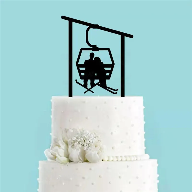 Acrylic Skiing Lovers Theme Bride Groom Wedding Cake Topper