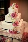 Cake Place 5 Tier White Square Wedding Cake With Pink Flowers