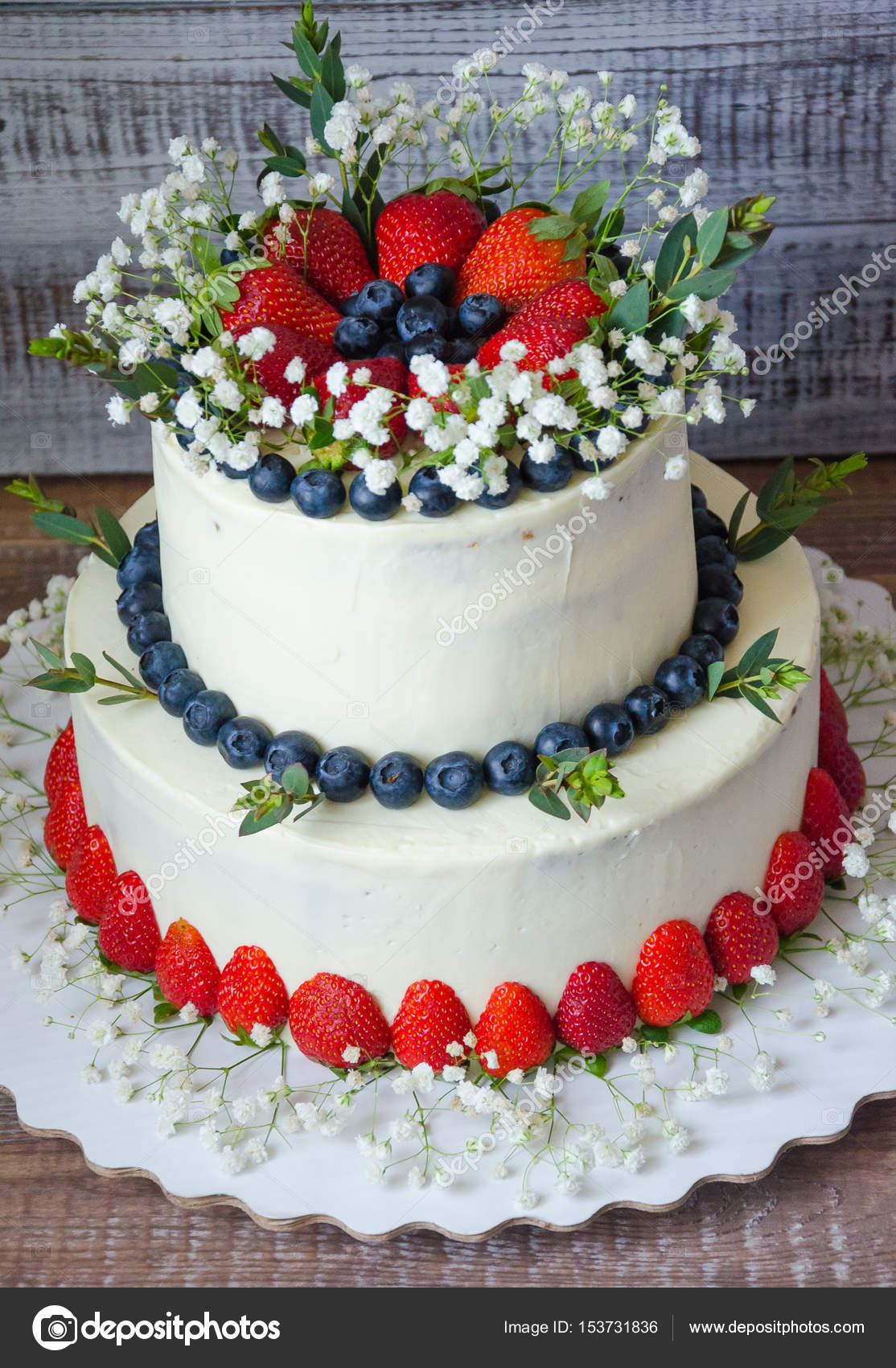 Two Tier Cream Cheese Wedding Cake With Blueberries And