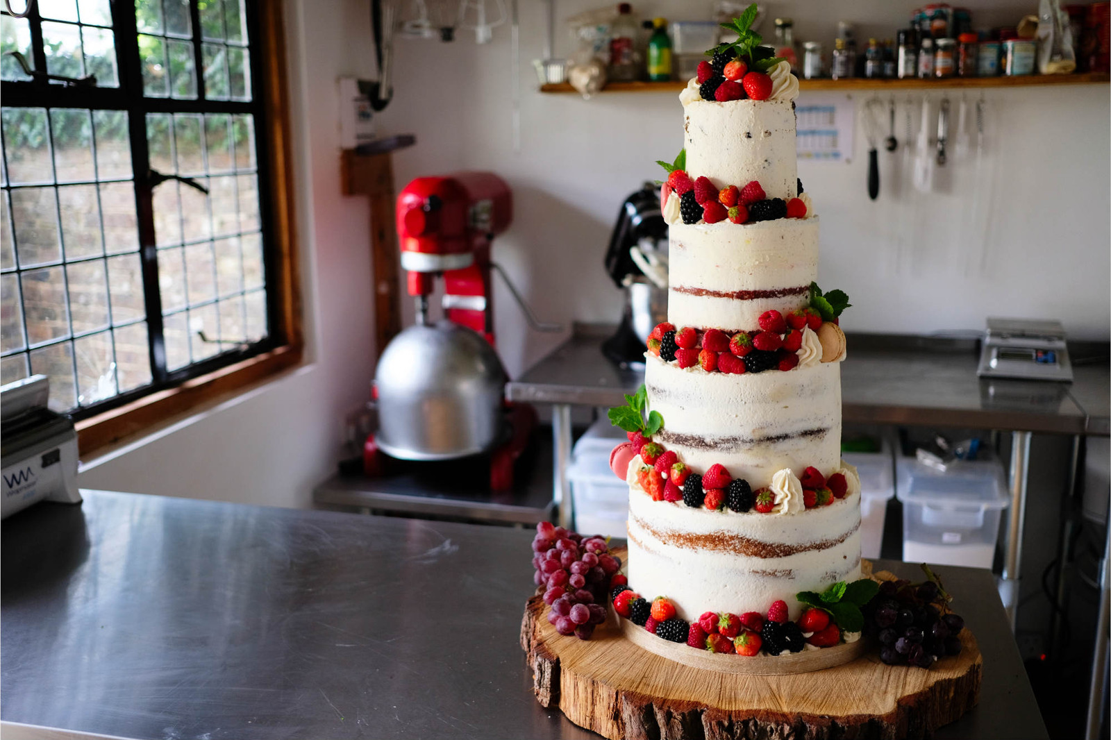 Vanilla Flavoured 4 Tier Semi Naked Wedding Cake Decorated With