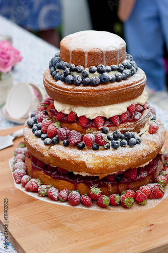 Naked Wedding Cake With Blueberries And Strawberries A Rustic