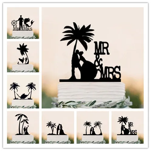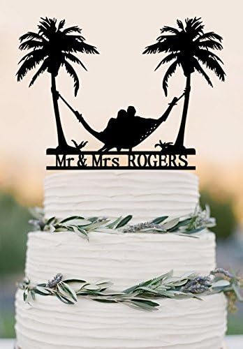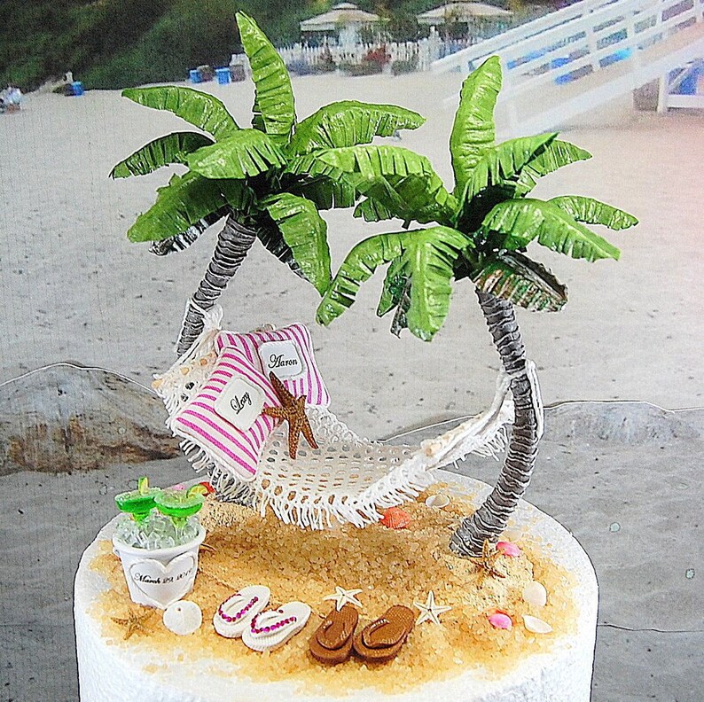 Beach Theme Honeymoon Hammock Wedding Cake Topper Palm Trees Cake