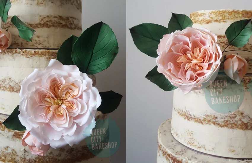 Naked Wedding Cake With David Austin Sugar Roses Queen City
