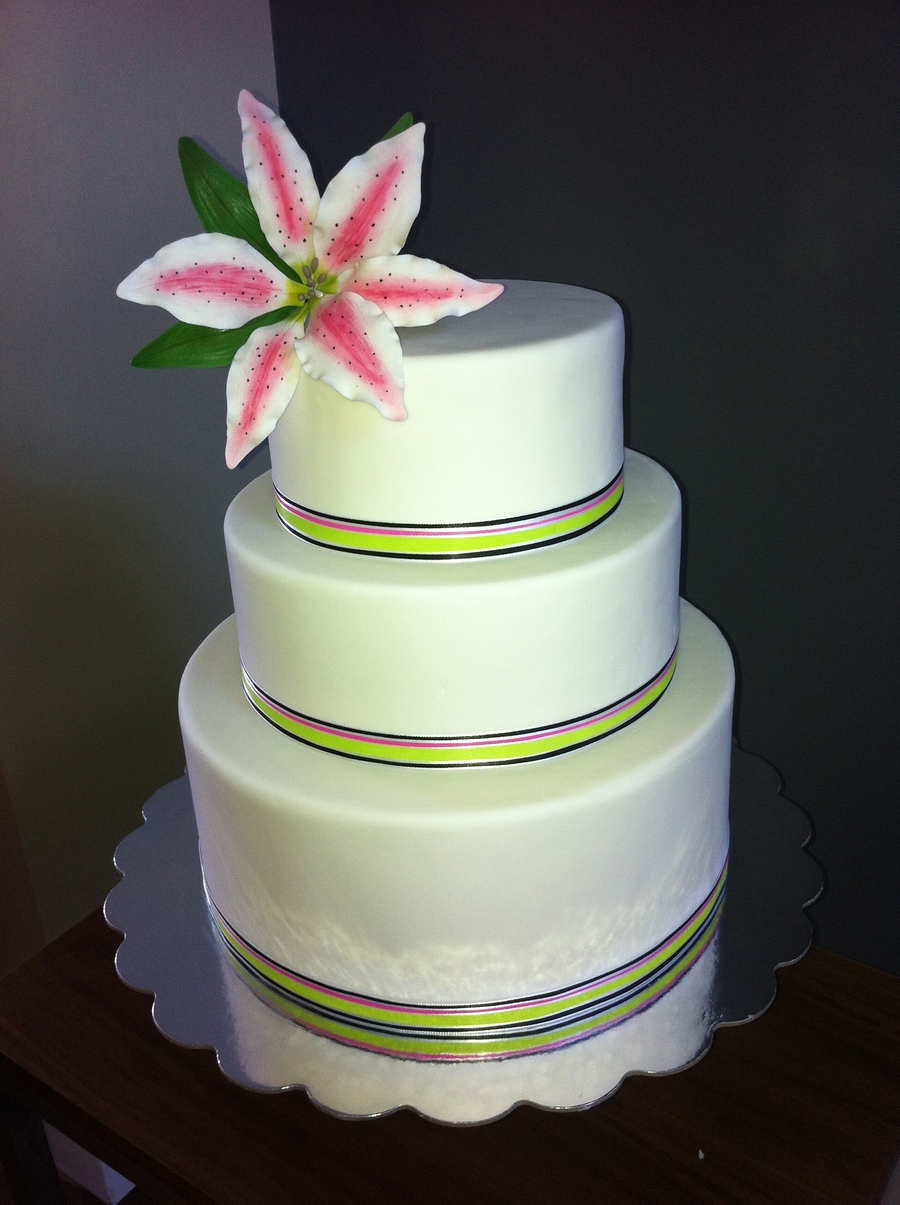 Pink 4 Tier Wedding Cake With Stargazer Lillies The Twisted Sifter