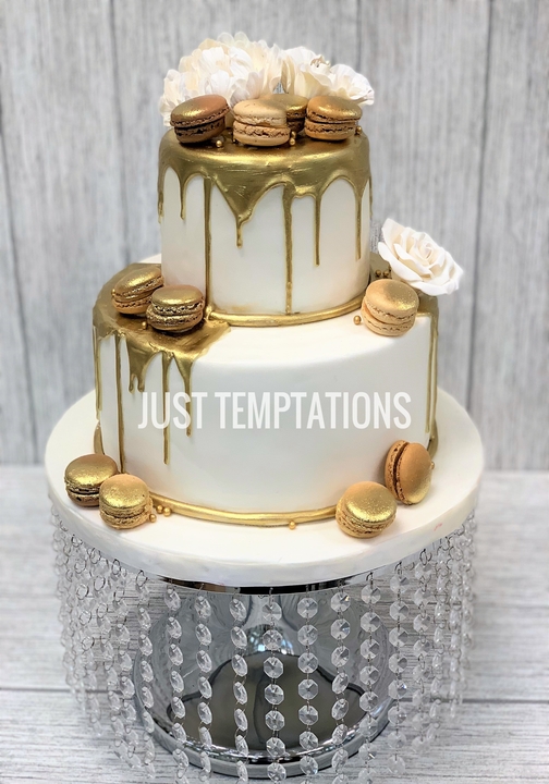 Small Single Tier White Silver Gold Wedding Cake 3 Handmade