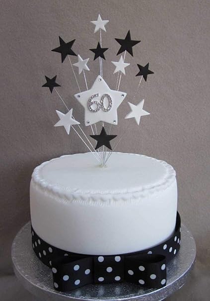 60th Birthday Cake Topper Black And White Stars Ideal For A 15cm