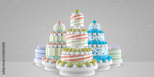 Different Buttercream Birthday And Wedding Cakes With Colorful