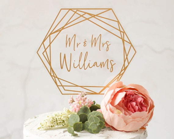 Gold Hexagon Cake Topper Personalised Cake Topper Gold Etsy