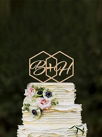 Geometric Wedding Cake Topper Initials Hexagon Modern Cake Toppers