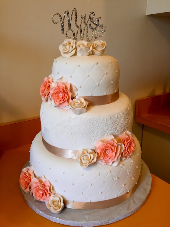 Peach Wedding Cake Topper 18pcs Edible Vintage Large Ivory Etsy