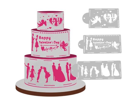 Love Theme Valentine Wedding Cake Decor Border Stencils 4 Etsy