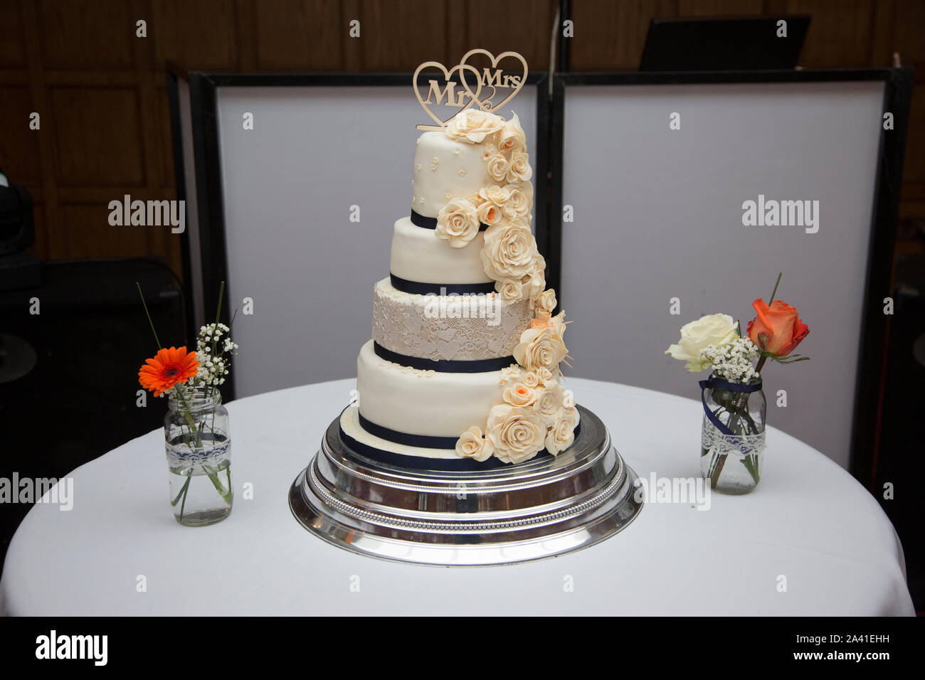 Wedding Cake Close Up With Decorative Flowers On Top Stock Image