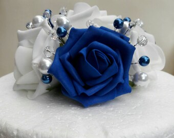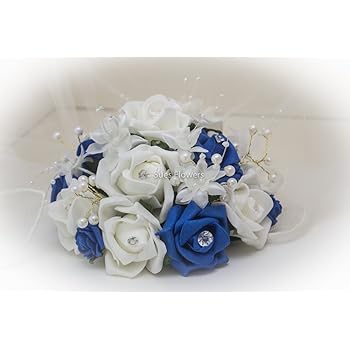 Wedding Flowers Cake Topper In Royal Blue And Ivory Amazon Co Uk
