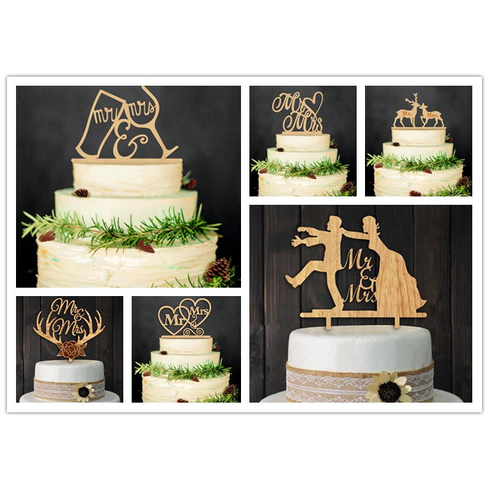 Antic Rustic Wedding Cake Topper Wood Cake Decorations Shopee