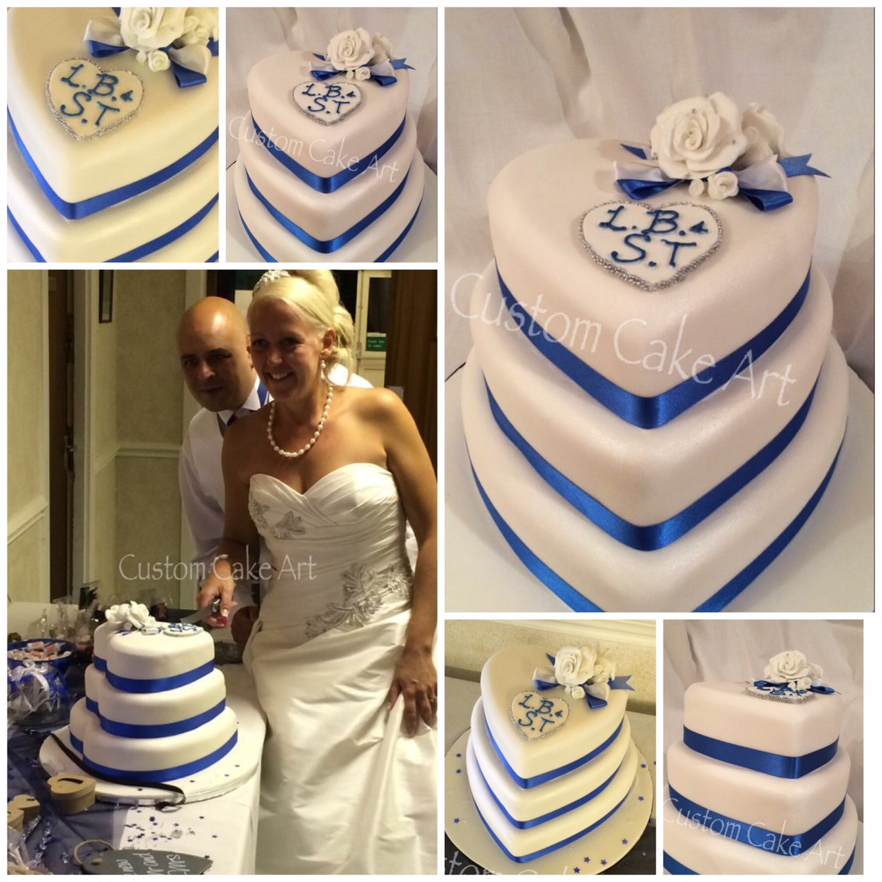 Making a dramatic tiered cake can be tricky but if you follow these steps carefully you can have your cake and eat it too. Fondant ruffles hand rolled sugar pearls royal icing cage and gumpaste peony. A classic 3 tier white cake trimmed with blue ribbon featuring blue sugar pearls and bespoke figures of the bride grooms pet dogs plus their own star wars figure toppers.