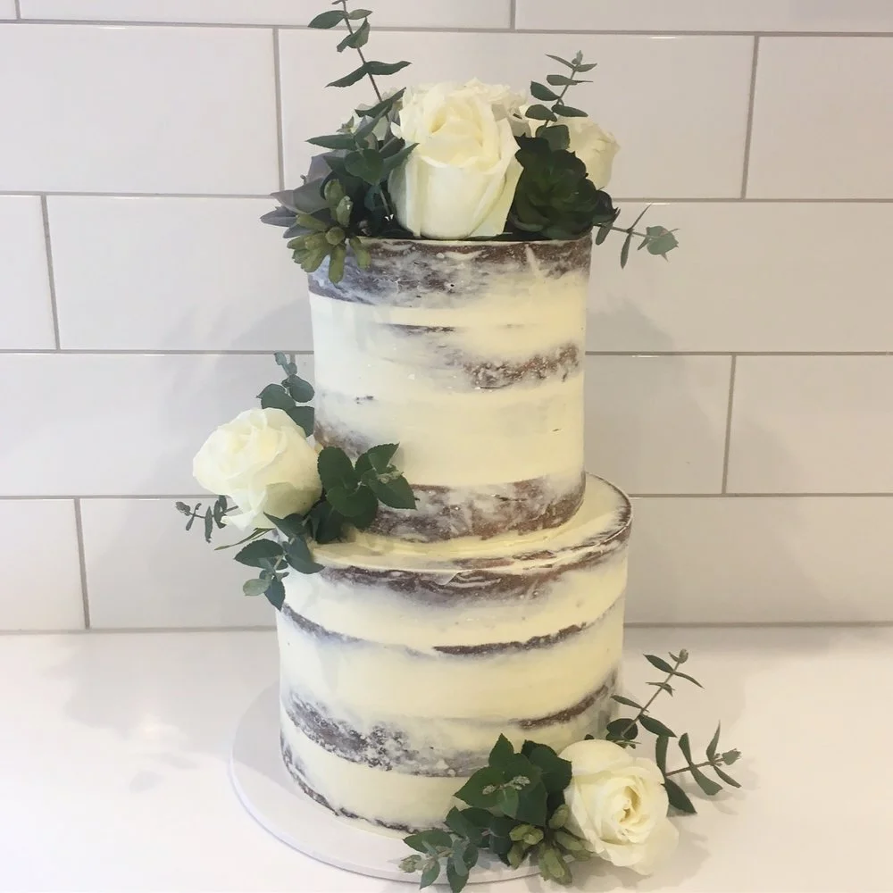 2 Tier Wedding Cake Decorated With Pleated Buttercream And Edible