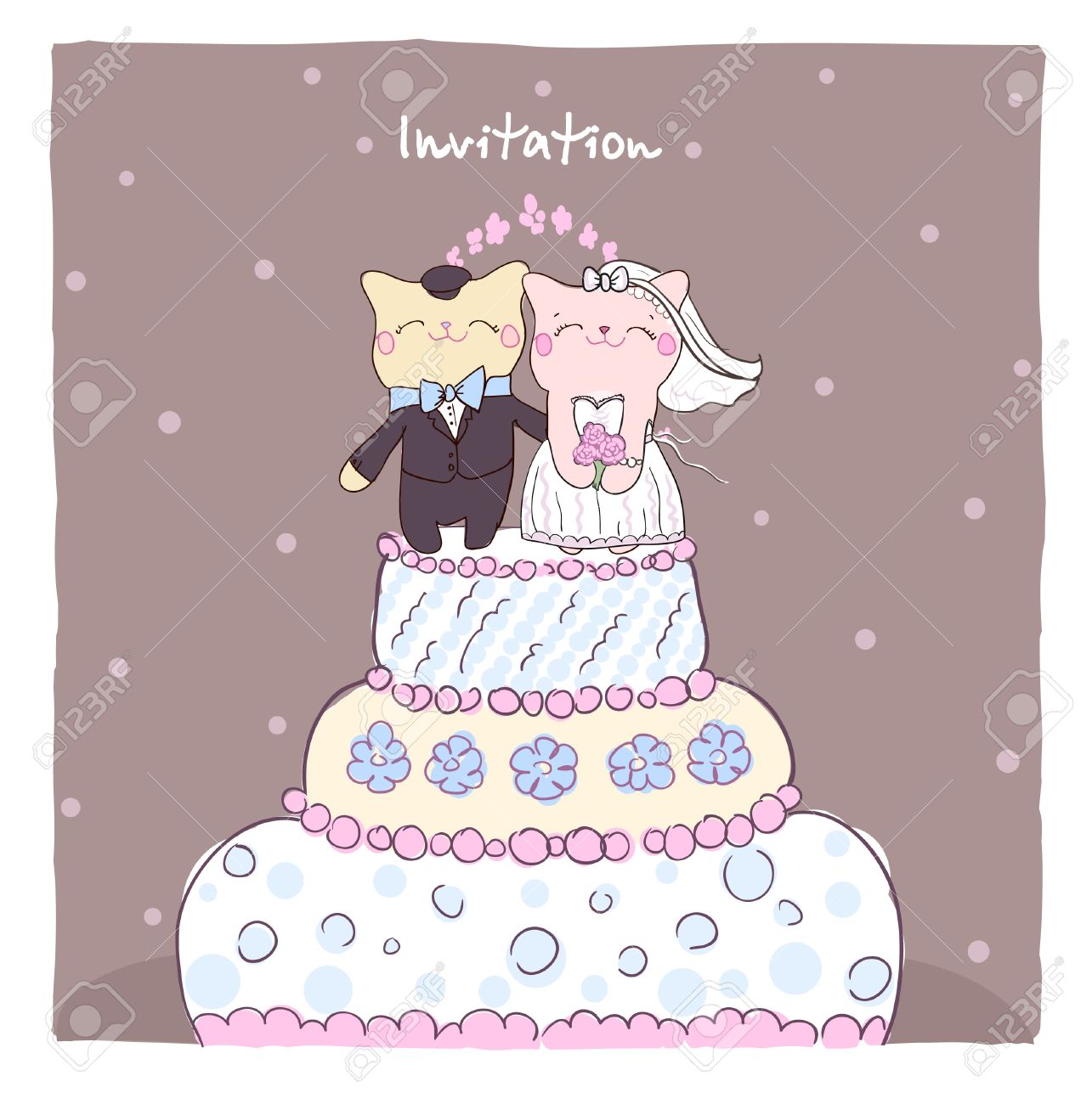 Wedding Invitation Card With Cake Topper Cute Cats Royalty Free