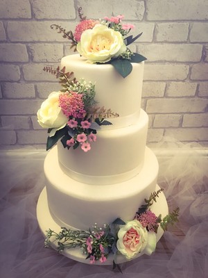 Ttraditional Three Tier Wedding Cake With Daisy Flower Decorations