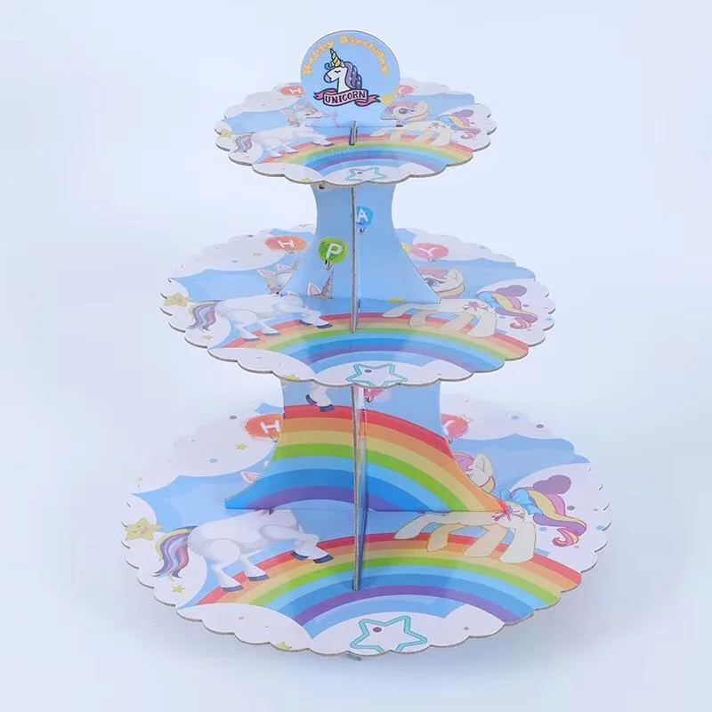 1set Rainbow Unicorn Paper Cake Stand Birthday Party Paper Cake