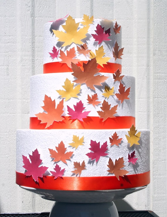 Fall Wedding Cake Topper Fall Leaves Maple Leaves Set Of 24 Etsy